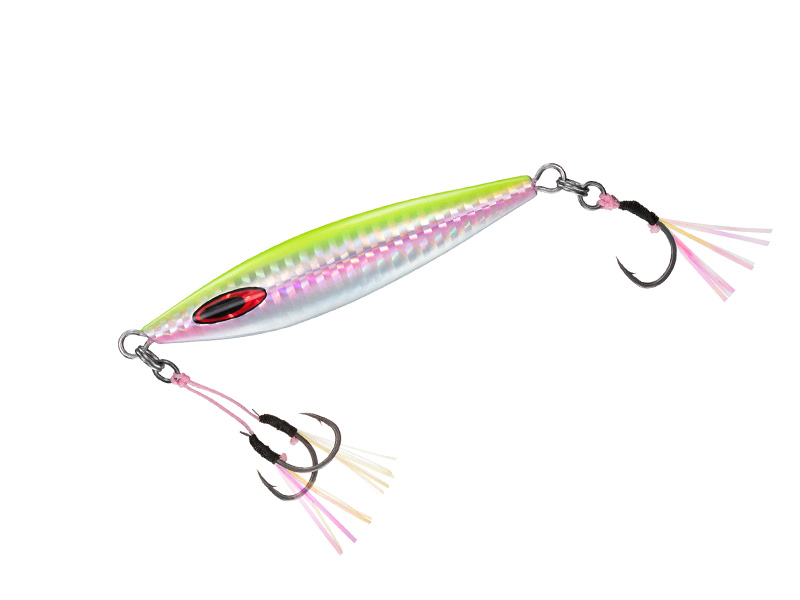 フォールで見せてしっかり食わせる。スーパーライトジギングでもこのコンセプトそのままに専用フック搭載でリリース。