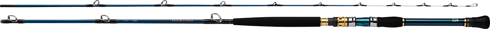 これまで1ピース(フェルール接続を含む)が常識であった落とし込み竿をはじめとした大物竿。今回は強度やロッドパワーはそのままにセンターカット2ピースを採用。持ち運びや輸送時も安心の仕舞125cm前後を実現した。新バランス理論による持ち重りの改善は自重の軽量化以上の恩恵をもたらす。