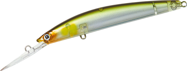 限りなく細くシェイプされたボディは、ワカサギなど本物のベイトフィッシュの形状に近く、バスに違和感無く口を使わせることを可能にした。このボディの細さは飛距離が心配になるところだが、後述のサクサス加工を施したサイレント重心移動システムの搭載により、十分なロングキャストを可能にした。