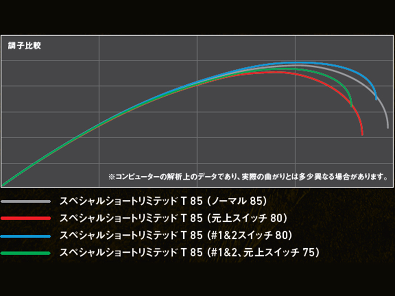 85としてのTの完成度は凄まじく、テクニカルの使用感でスペシャルTに近いパワーを実現できるようにこだわりました。下竿で掛けた時のノサれやすさも軽減しているので、普段Tを使わない方でも使いやすいと思います。