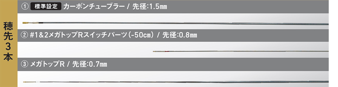 ■メガトップR、#1&2メガトップRスイッチパーツ(-50cm)の2本の替穂先が付属