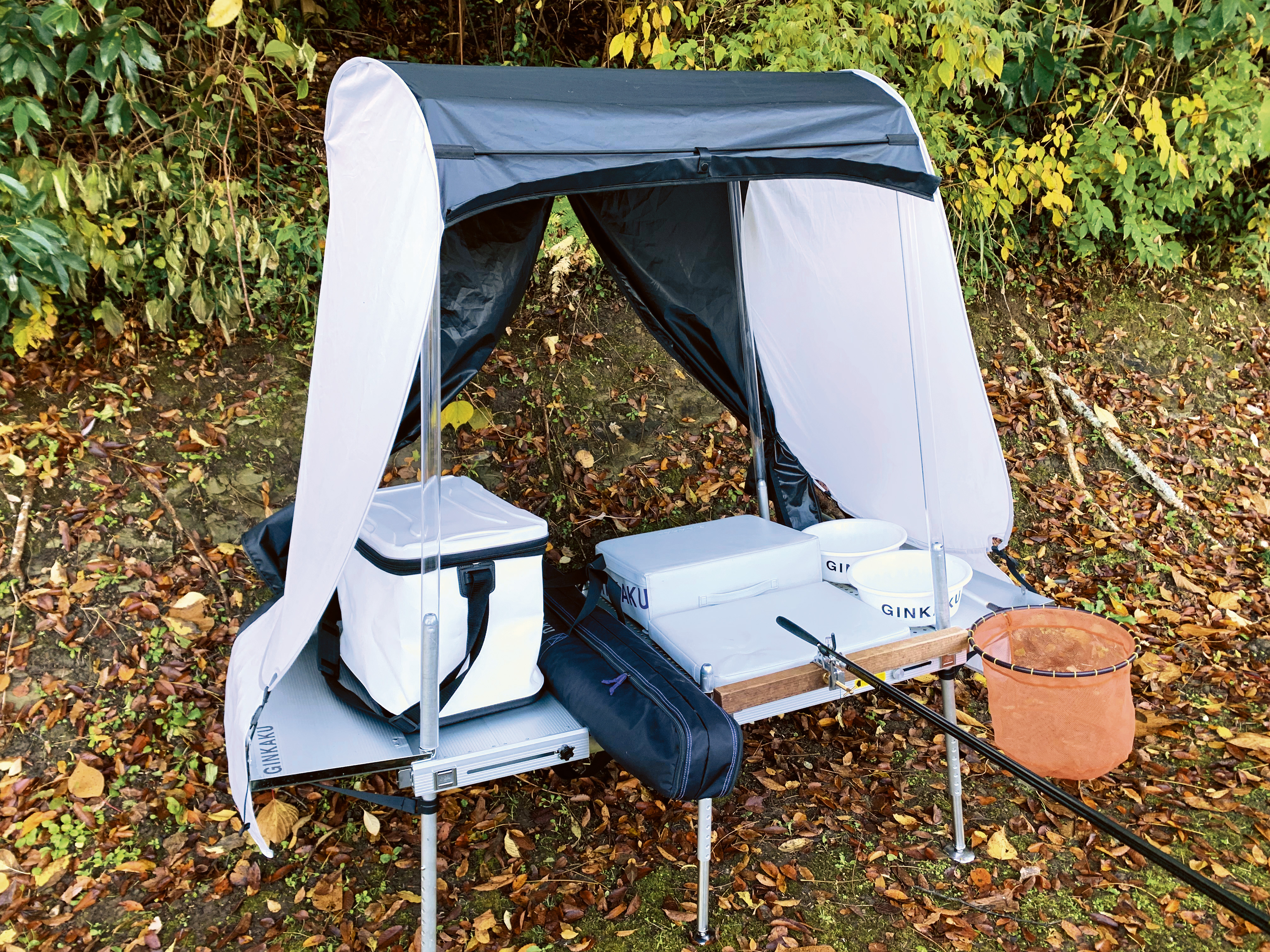 GINKAKUへら台にセットできるテント。