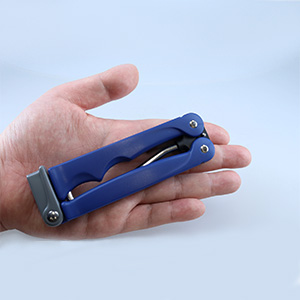 手のひらに収納状態の製品を乗せた写真。