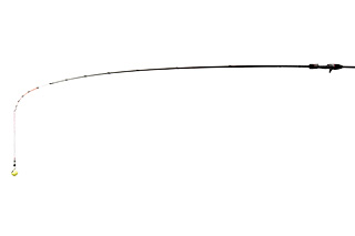 超弾性チタン合金は素材の特性上、5℃以下の低温環境では弾性が低下し、穂先の戻りが遅くなってくるという事象が起こります。早朝・夜間の極端な冷え込みや風の影響で、気が付く程度の曲がりが生じることがあります。更に0℃以下の環境で弾性低下は、より進行し穂先が曲がったまま戻らない現象が起こります。いずれの場合も気温が上昇すれば本来の超弾性に戻り通常のご使用が可能になります。