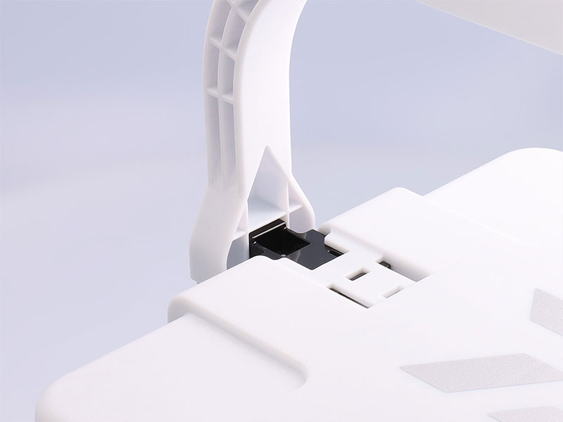 持ち運び時にロッドスタンドやボックス内の重量バランスによる傾きを防ぐハンドルストッパーを採用