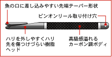 閉じた魚の口に差しこみやすい先端テーパー形状