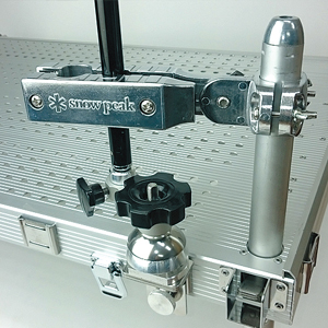 従来の万力に比べ、軽量(約380g)で、コンパクト。スクリューによる着脱で、スピーディーに装着できる。