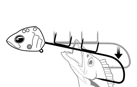 下に引き込むバイト(喰い下げ)時に、針先がスライドすることで針掛かりが向上。
