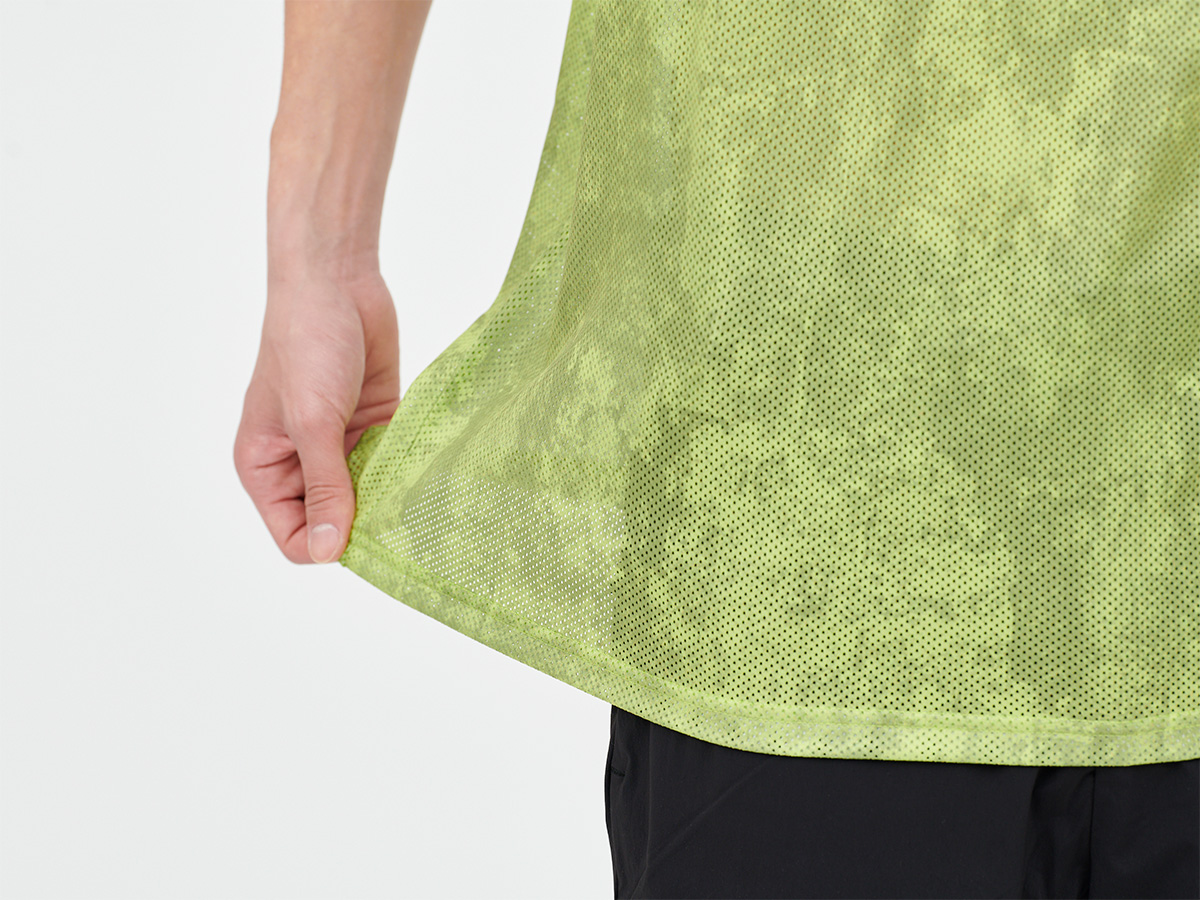 通気性のあるメッシュ素材に吸水速乾加工を施し快適性向上。
