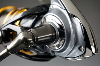 ラインがラインローラーまで流れるように送り出される凹凸のない滑らかなベール形状により、糸ガラミトラブルを大幅に減少します。さらにベール自体を中空構造にしたことで、重量を変えずに大幅な強度アップを実現しました。