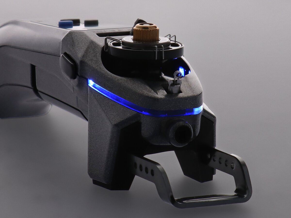 使用シーンによって電池か外部電源αユニットAIRの使用を選択可能。外部電源αユニットAIRを使用することでリールの総重量は軽くなる。また、極細径コードを採用しているため実釣時のストレス軽減。