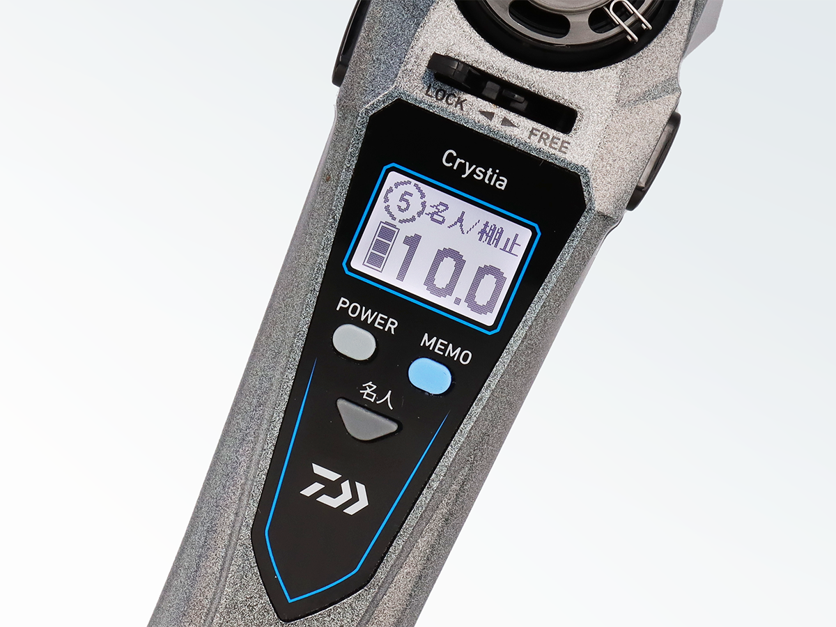 水深カウンターはしっかり見え、「名人」「だんだん」「棚止」は液晶パネル内が表示される。また、各種便利機能設定時にもドット文字表記のため、 現在設定されている機能が一目瞭然。