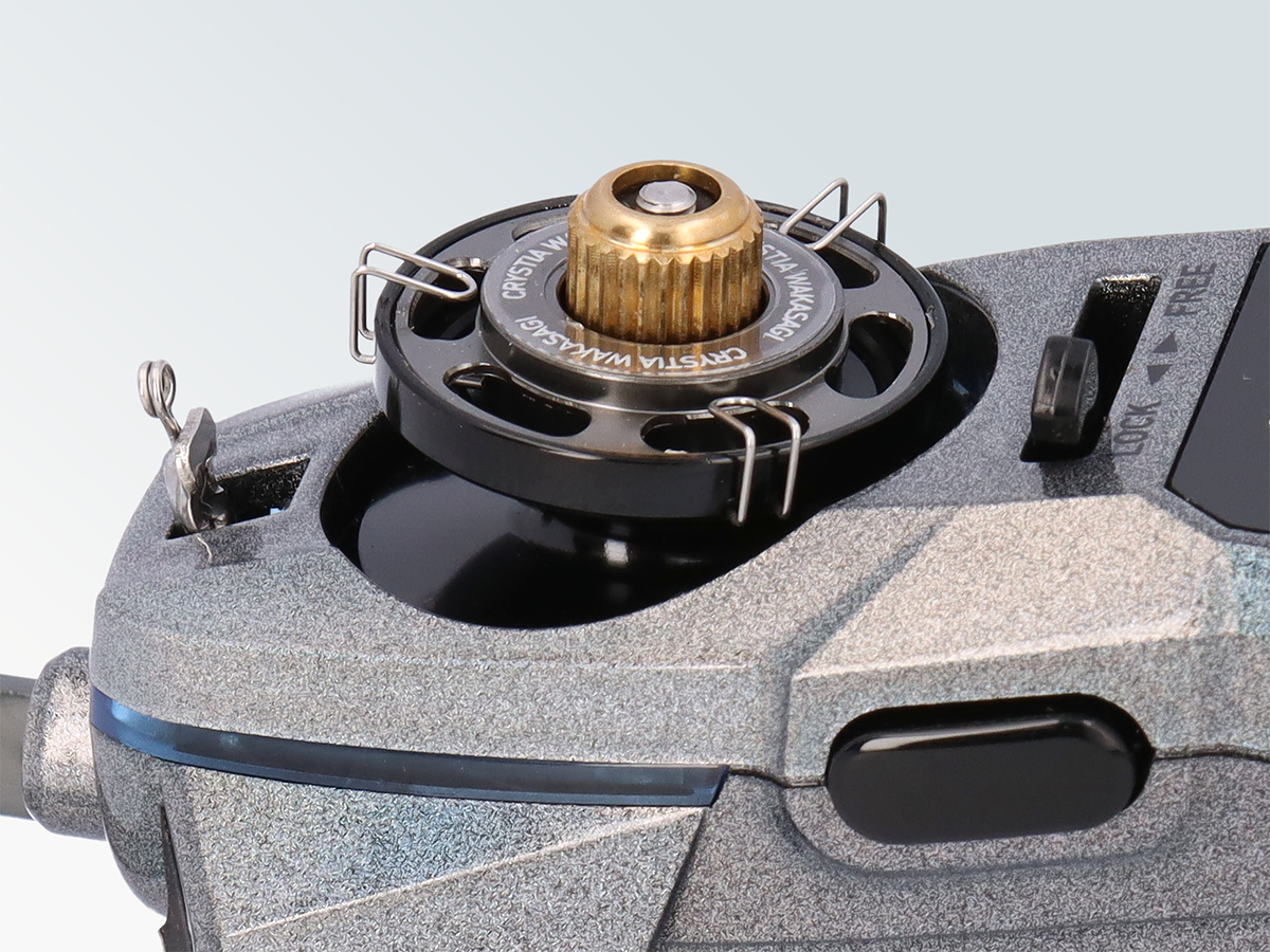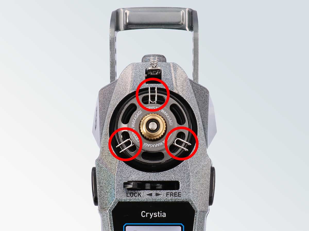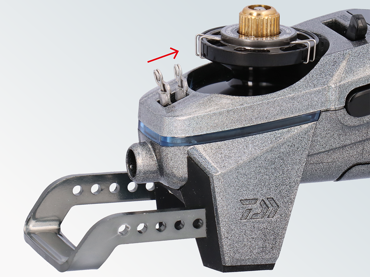 スプール上部の3箇所にラインストッパーを装備。アタリがよく出るタナ(魚の泳層)でラインをストッパーに引っかけることで、毎回仕掛けを落とすたびに自動的に同じタナで仕掛けを止められる便利な機能。