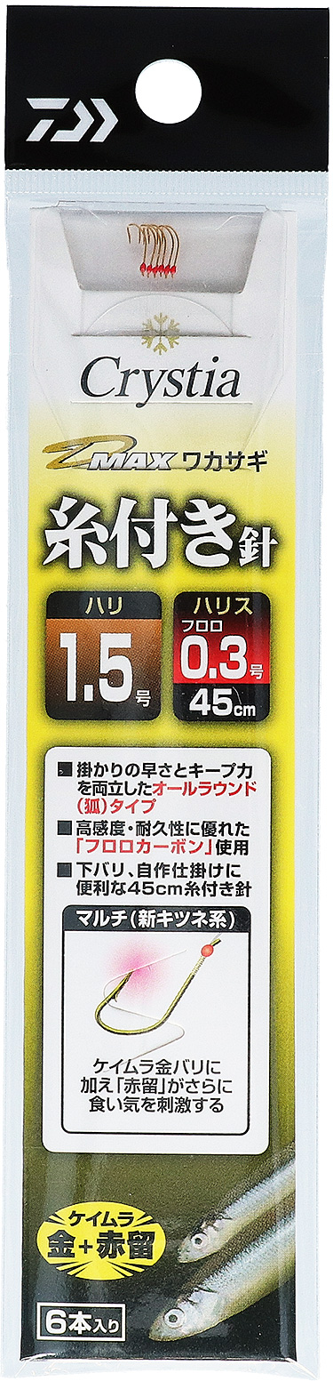 D-MAXワカサギ糸付き針 KK赤留め マルチ 1.5-0.3 | 0.2 | 45 | マルチキツネ型 | 6 | オープン価格 | 4550133118883 |