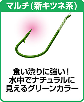 ■KG(ケイムラ緑):食い渋り~高活性までハリの違和感を感じさせないグリーンカラー