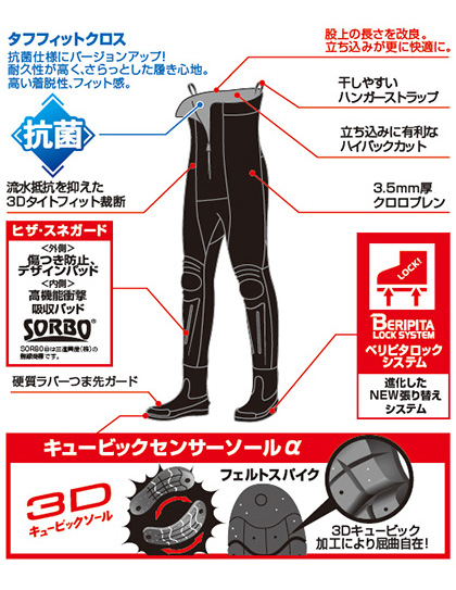 SPW-4513VR-BL(先割/フェルトスパイクソール) スペシャルスリムウェーダーSPW-4513VR-BL
