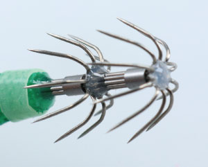 刺さり重視のカンナで小型イカの触りも確実に掛けて獲る。素材がステンレスのため錆びにも強い。