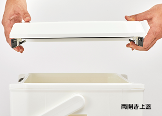 取り外し可能で、お手入れも簡単な両開き上フタ