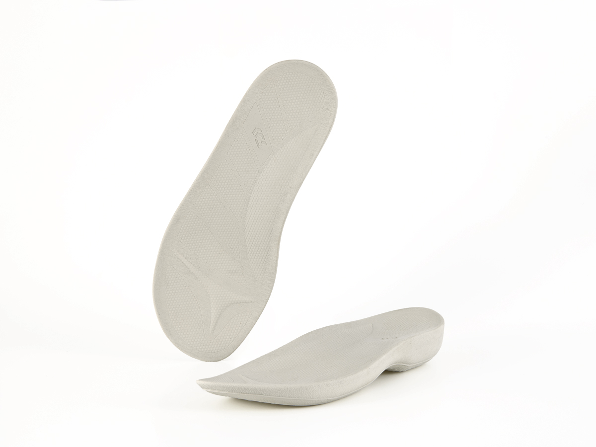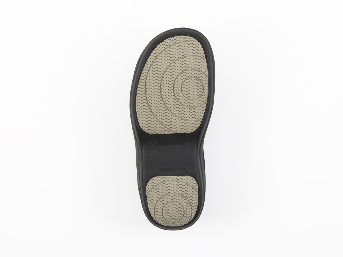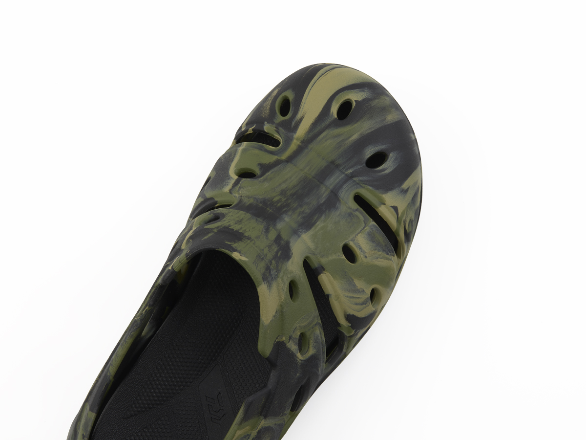 つま先には蒸れを逃がすエアホール仕様。履き心地の良い柔らかさを実現するEVA素材。