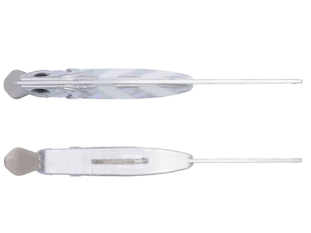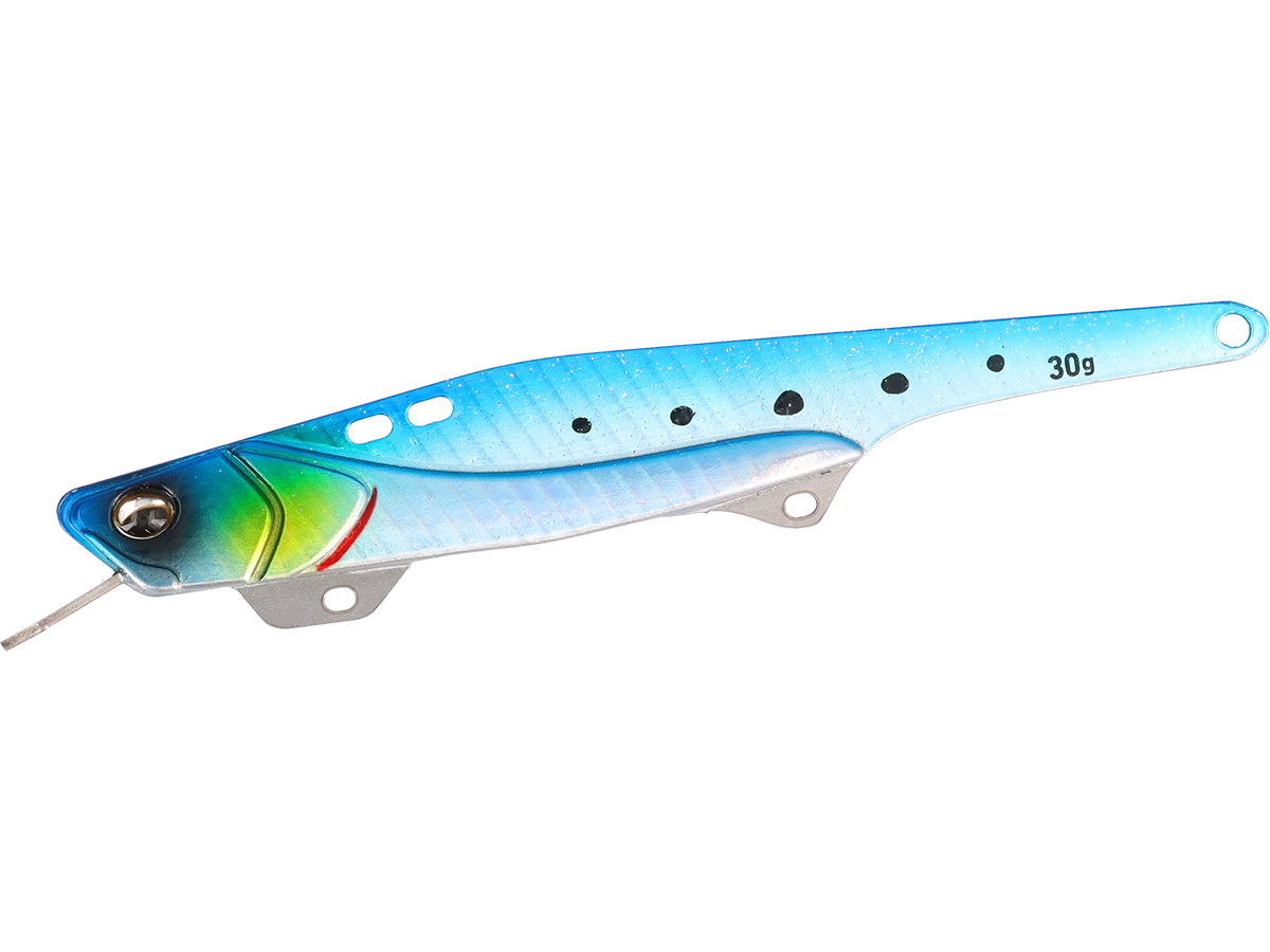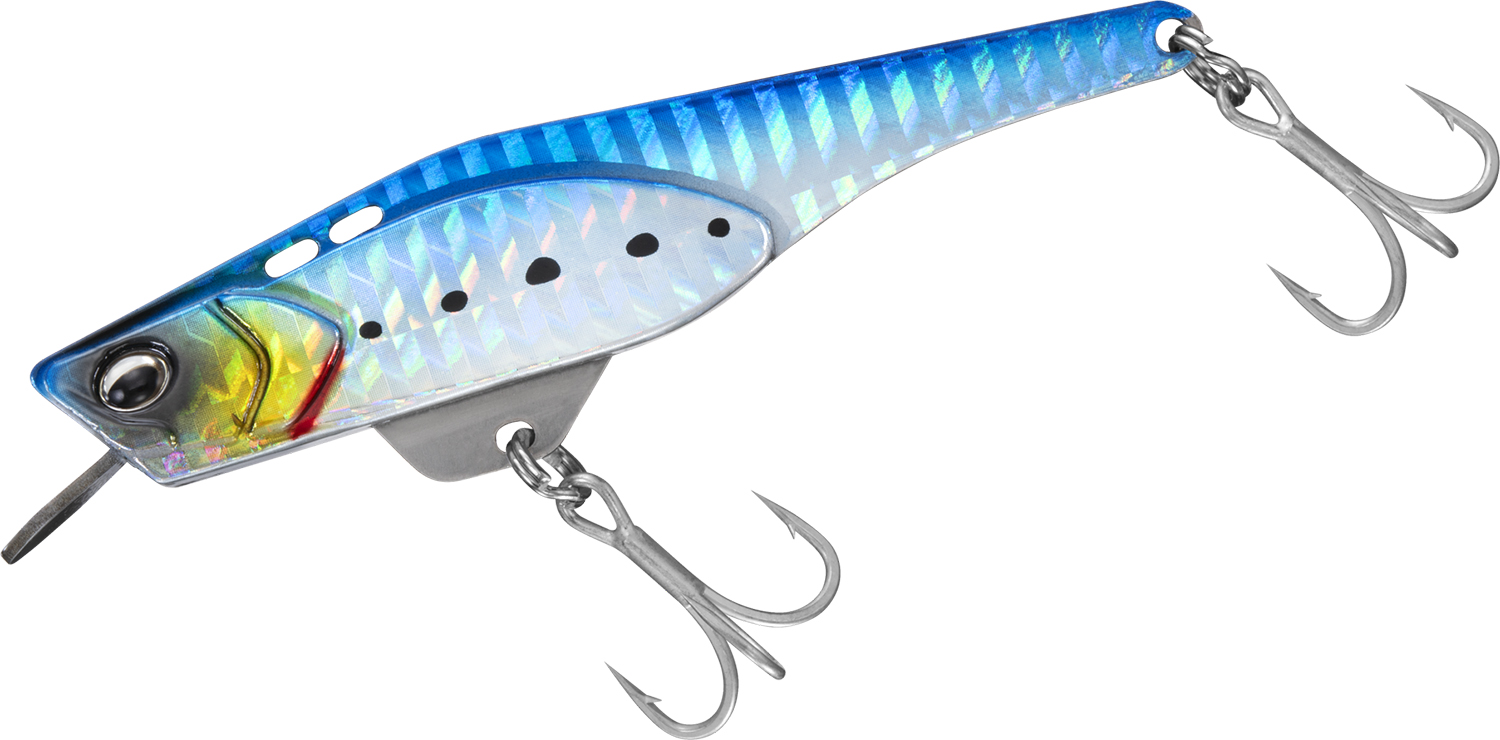 ステンレスリップのニューオリジナルデザイン、今までにないミノーライクな鉄板系。樹脂製ヘビーミノーより細身でシルエットが小さく、ベイトが小さい時やセレクティブなときにも対応可能。魚の活性やレンジに合わせて、アクションの使いわけが出来るダブルラインアイ設定。
