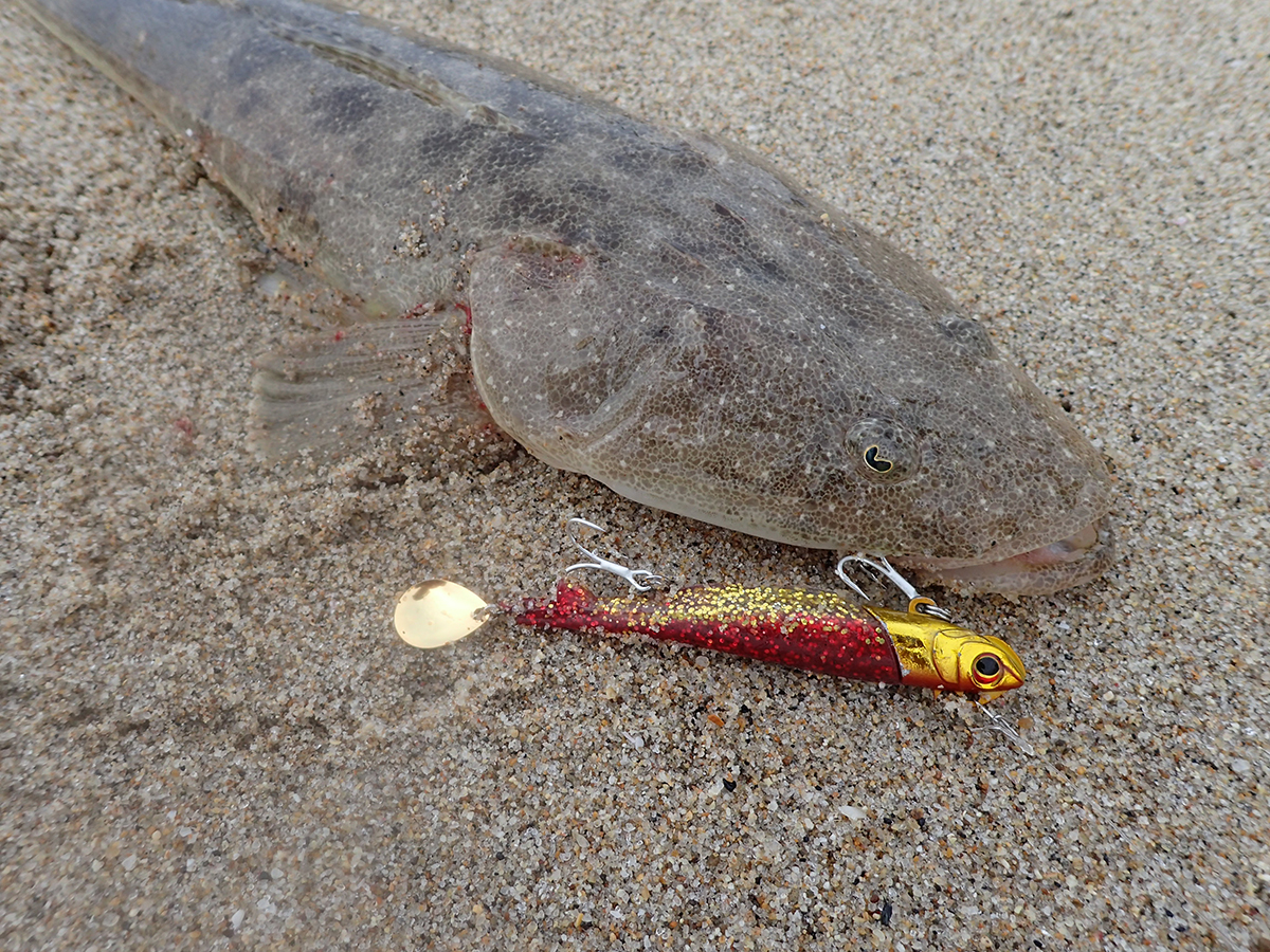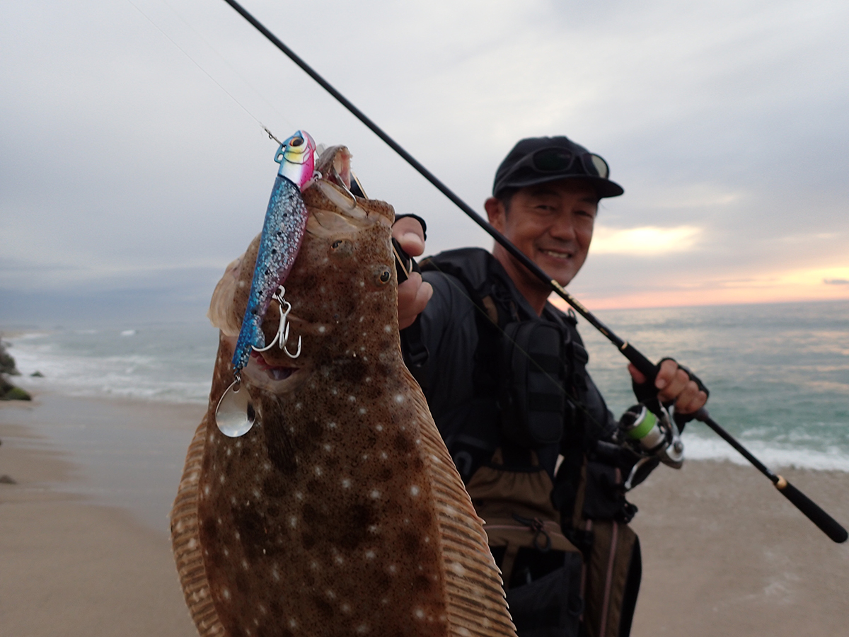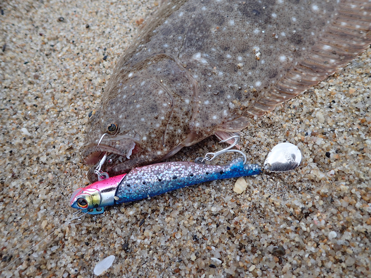 メタルジグでは実績十分のブレードをワームにセットすることで食い渋りのヒラメ、マゴチに口を使わす、ワームとブレードの利点を融合したサーフフィネス新釣法。