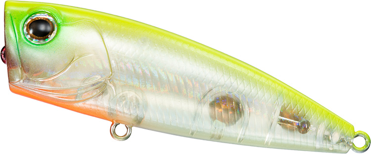 「ボコン!」という大きなポップ音を発生させることができるポッパーは数多くあるが、前方に飛沫を飛ばす「スプラッシュ」や、ペンシルベイトのような左右に首を振る「ドッグウォークアクション」まで全てのアクションを高次元でこなすポッパーはそう多くない。限られたキャストの中で、どれだけ変幻自在なアクションで攻められるかがカギとなる昨今のフィールド。これらすべてを一つでこなせるというのは大きな武器となる。