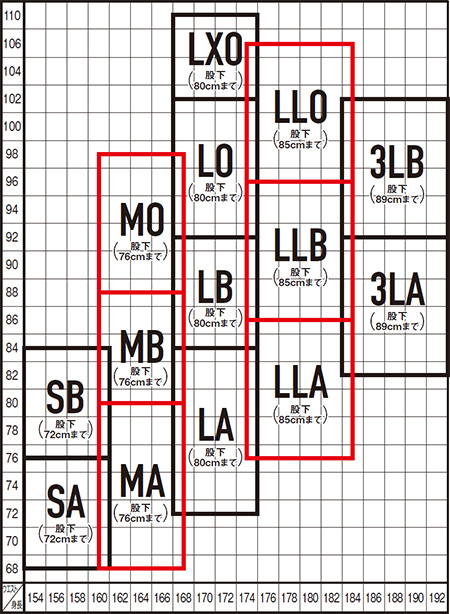※股下とは股間から土踏まずまでの長さを基準としています。