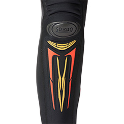 高機能衝撃吸収材【ソルボ】をヒザ・スネ部に内蔵。万一の転倒時のヒザやスネの保護に威力を発揮する