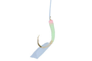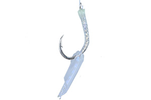 ■針のフトコロに夜光塗料を塗った後にソフトアミエビ ホワイトを巻いた擬餌写真