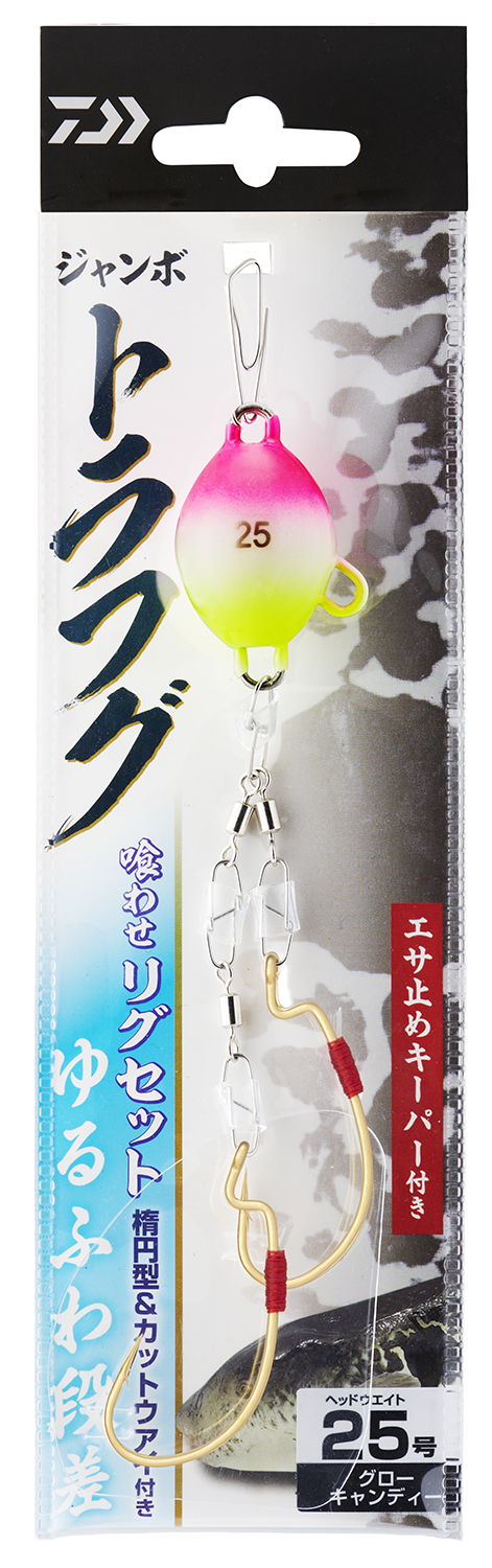 | ジャンボトラフグ 喰わせリグセット Kアイ付2本ゆるふわ段差25号 グローCD | グローキャンディー | 25号 | 1 | 1,550 | 4550133612398 |