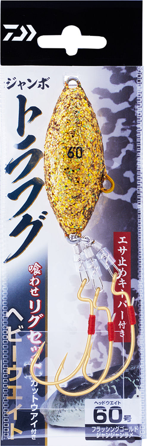 | ジャンボトラフグ 喰わせリグセット Kアイ付3本 HW60号 FGJJラメ | フラッシングゴールドジャンジャンラメ | 60号 | 1 | 2,100 | 4550133612329 |
