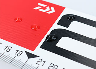 デカ目盛&10cmごとに白、赤の色分けを行うことで写真にもはっきり写る。