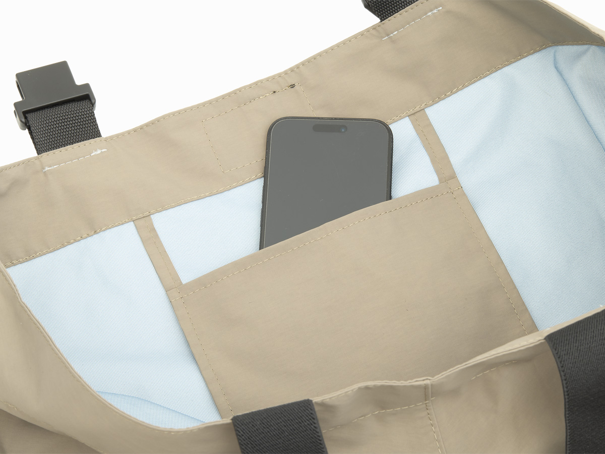履き口正面の内側には、携帯や車のカギなどの小物を収納できるポケット付き。