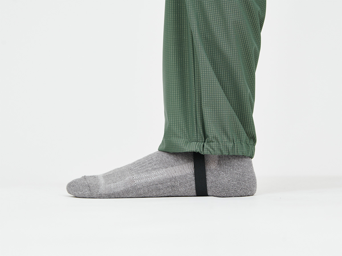 着用時に裾が上がらないように足裏ゴムを搭載。