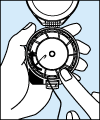 ハリをマットに差し、スプールを時計回りに回転させてハリスを最後まで巻き込む。