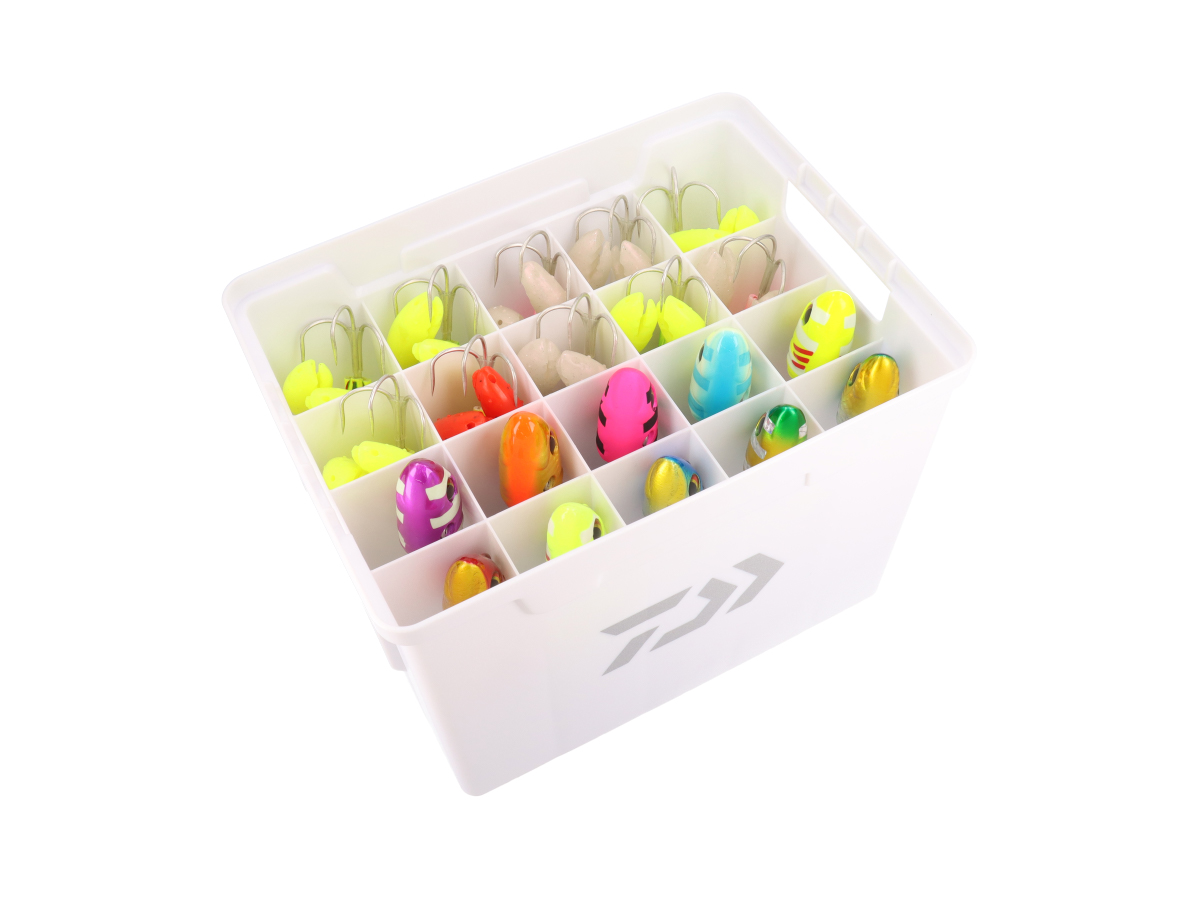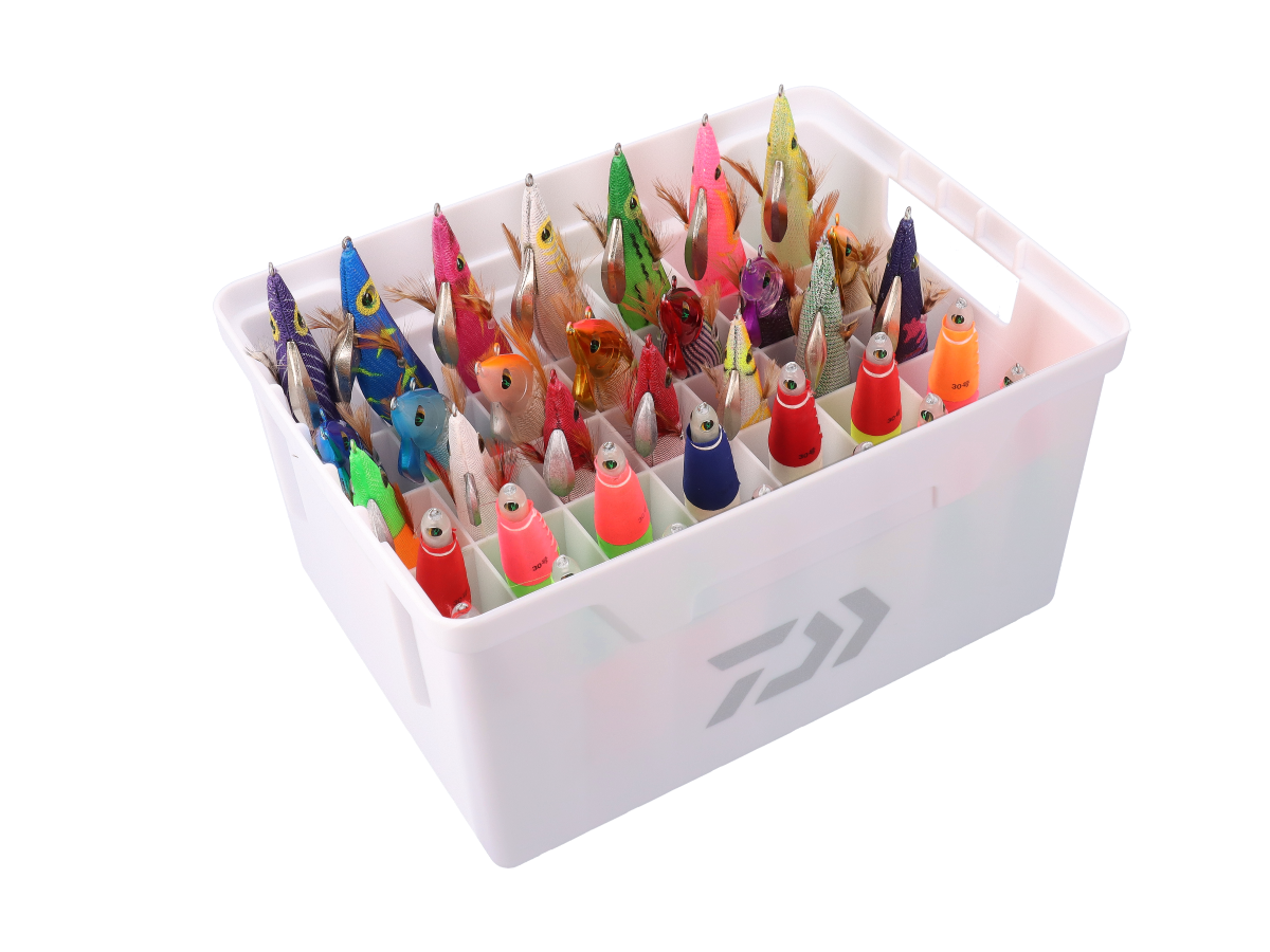 1マスを大きくすることでかさばりやすいタチウオテンヤやタコエギも収納可能。