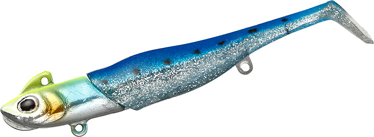 ワーム部分には、ダックフィンシャッドシリーズで実績の高い、ベイトフィッシュそっくり且つ食べごろ感たっぷりのボディに水鳥の足ヒレ形状からヒントを得た「ダックフィンテール」を搭載。