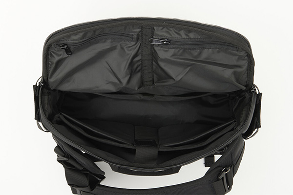 本体内部正面側に2つのファスナーポケットと2つのオープンポケット。