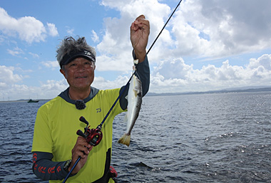 ここでリールについて触れておこう。微細なアタリを創り出して掛ける湾フグ釣りには、ロッドも含め軽量でギア比の高い船両軸リールが必要不可欠である。それは、タックルが軽量なほどアタリがハッキリと出るからである。また、アワセによって下アゴにカットウが掛けられたフグは上を向かされ驚きと共に水面方向に泳ぎ出す。ここでギア比の低いリールではラインの巻き取りが遅いのでラインに弛みが生じ、カエシの無いカットウが外れてしまうことがある。ADMIRA100XH(エクストラハイギア)であれば軽量コンパクトに加え、ギア比が8:1と高く、ハンドル1回転で76cmラインを巻き込むことができ、TWS搭載で、軽いオモリを使うことが多い湾フグ釣りでもキャスト性能に優れている。その軽さのアドバンテージは釣りを次のステージへと誘ってくれ、もちろん私も愛用している。