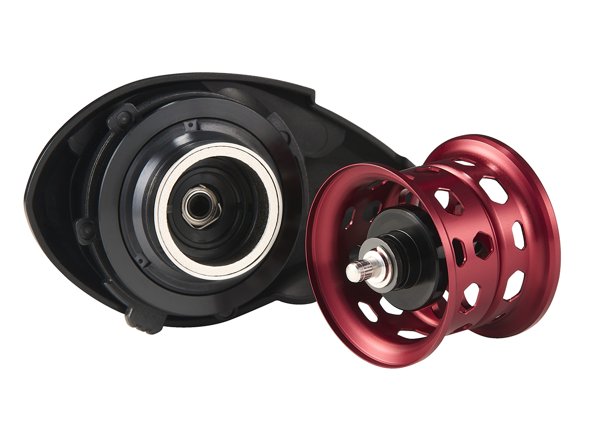 SS MAGFORCEとの相乗効果で、超小口径φ28mmAIRスプールに匹敵するスプール自重を達成。もはやスプール大口径化のデメリットすら覆すブレーキシステム“SS MAGFORCE”は、スプール性能を最大限に引き出し、TWSでのライン放出量最大化で手にする独自のキャストフィールを体感できる。さらなる領域拡大へ多くのベイトフィネスアングラーを導く。