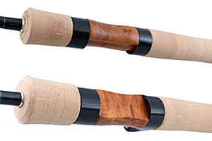 ベイトモデルはショートトリガー仕様とし、自在なキャストが可能に。リールシートには一本一本表情の違う天然木を使用。