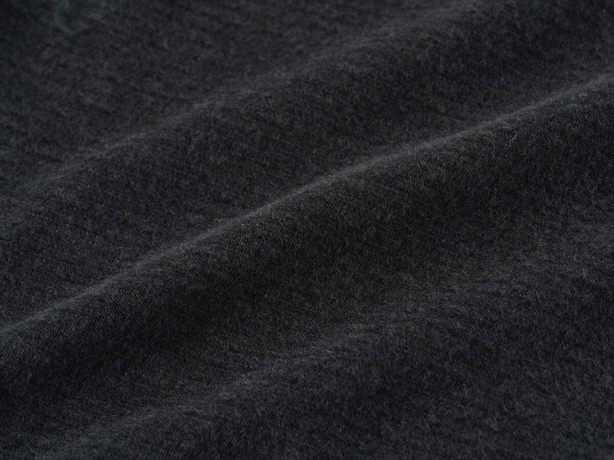 レイヤリングしやすい肉厚感に微起毛を施し、やさしい肌触りを実現。全身を包み込むようにふんわり柔らかく、暖かい触感の生地で、快適な衣服内環境を整えるよう開発。裏側には汗冷え防止の疎水性(水分を含まない)のポリプロピレン素材を織り交ぜることで冬場の汗冷えによる体温低下を軽減。