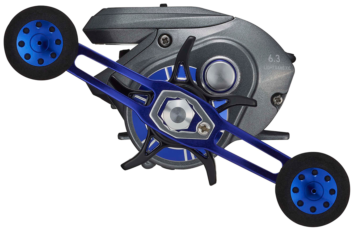 バランサー付き50㎜シングルハンドルに大型アルミラウンドノブが標準装備だから、ブレがなくパワフルな巻上げを可能にする。大物とのやりとりもしっかりとこなせる。
