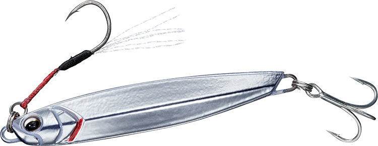 有ると無いとでは雲泥の差!サバやソウダガツオ、サワラをはじめとする小型ベイトを食べるフィッシュイーターに高い誘因力を発揮するティンセルを装備。フックはフッ素コートで抜群の貫通力を持つサクサスフック。アシストを短くしたことでフッキングのレスポンスと糸がらみも解消。触れた瞬間、ターゲットの口にフックが刺さる!