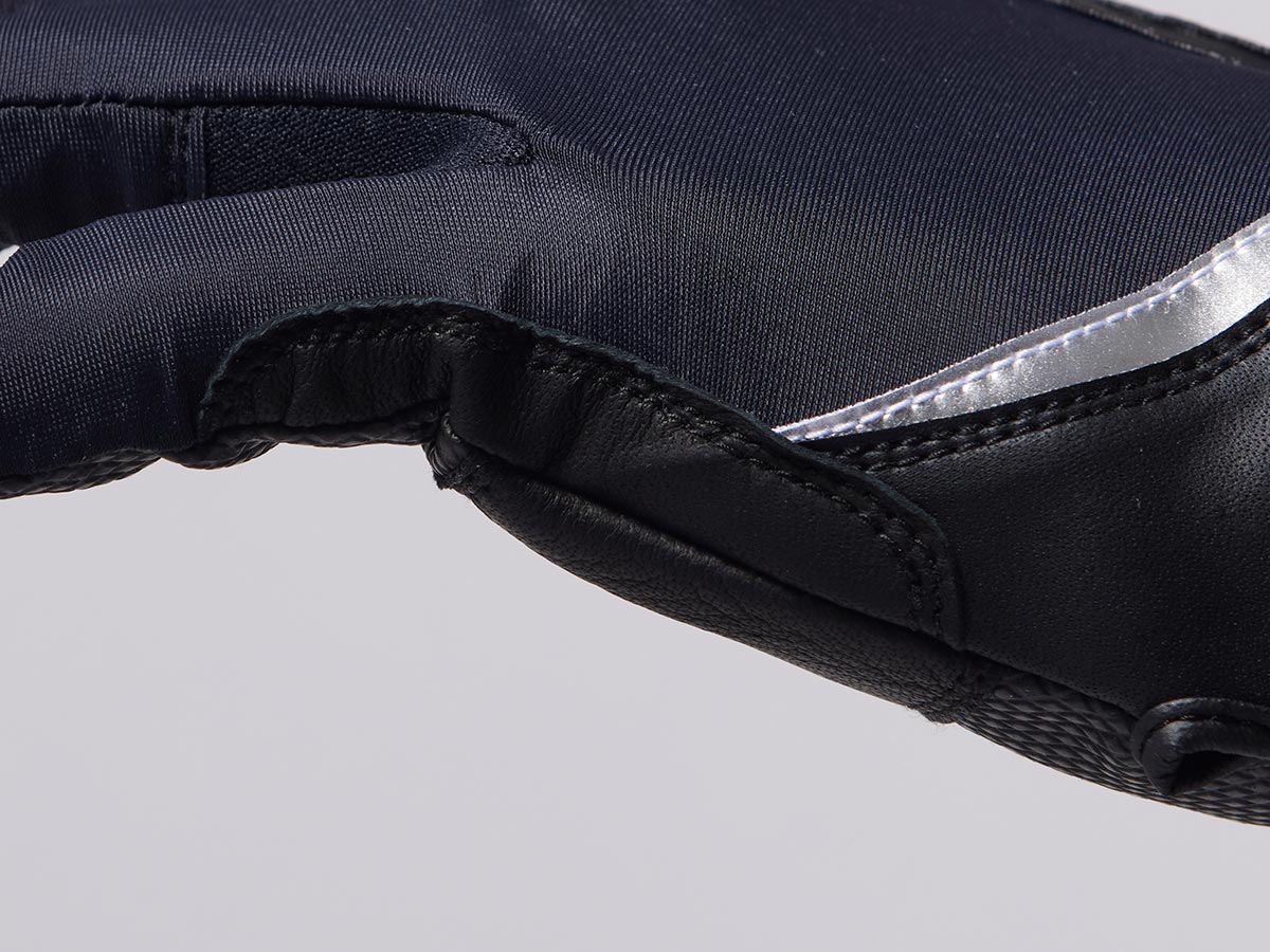 掌のアテと小指側サイドは、フィット感に優れた本革で補強。