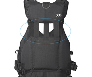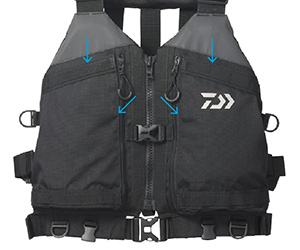 フロントの設計はルアー操作時にベストと腕が干渉を抑えたカッティング。