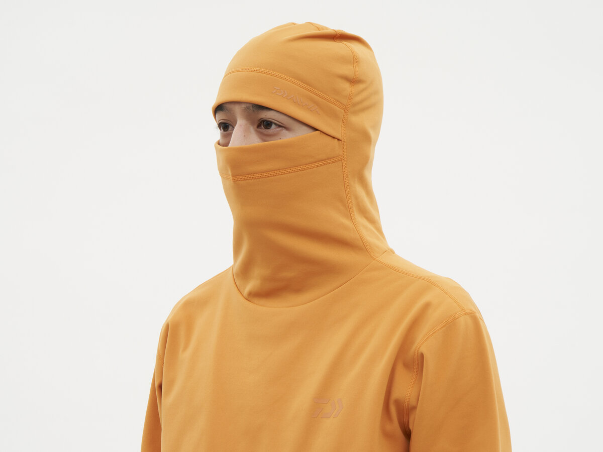 フード周りはフェイスまで覆えるバラクラバ仕様で寒さを防ぐ。