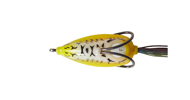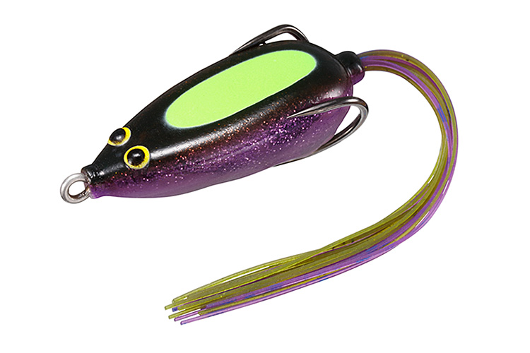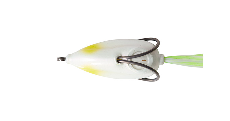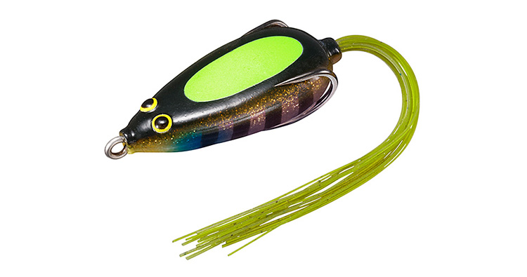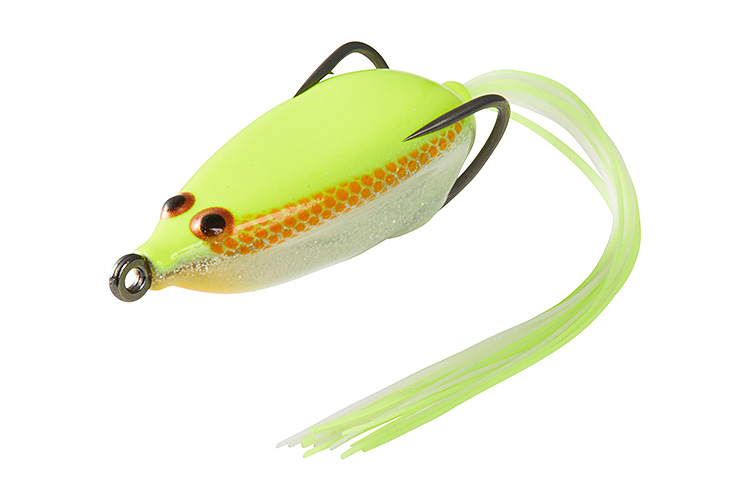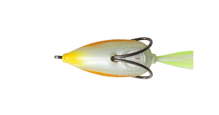 STEEZスナッピーフロッグは通常のフロッグタックルで使える最も軽いフロッグという位置づけ。水面直下から見えるか見えないかのギリギリのレンジまで沈めて水中をネチネチとドッグウォークさせて使う。