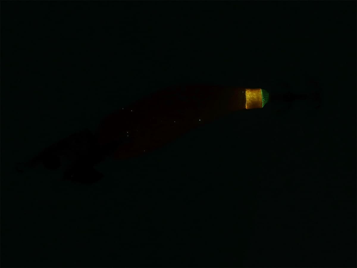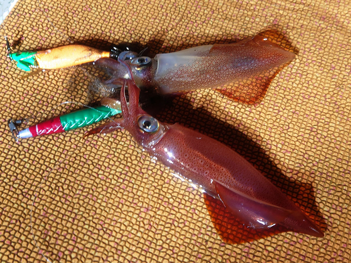 今まで反応しにくかったイカが反応しやすい縦ジョイントエギ。ドルフィンアクションでイカを狂わせる。
