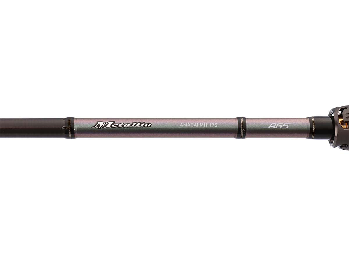 軽量・高感度を実現するAGS(エアガイドシステム)はカーボンフレームを採用しており、チタンと比較して約3倍の剛性をもつカーボンの特性から、ラインを通して伝わるわずかな信号を吸収することなくダイレクトにブランクに伝える高感度を有します。また、カーボンの軽量性によりロッド全体の軽量化にも貢献し、特に穂先部の軽量化につながることで感度の向上にも追加の効果が見込めます。